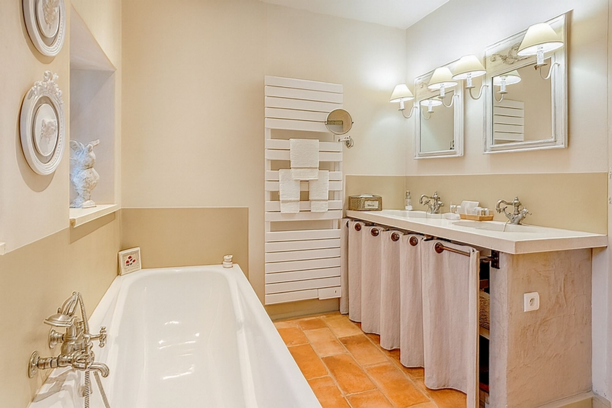 Orientée plein sud, cette demeure d’environ 330 m² habitables a été restaurée dans le respect des matériaux nobles – pierre de taille, poutres apparentes, ferronnerie artisanale – tout en intégrant les équipements modernes attendus d’une résidence de standing. Chauffage au sol, climatisation (hors salon principal naturellement tempéré), double vitrage bois, internet, système de sécurité, eau de ville et source privée assurant l’irrigation du jardin et le remplissage de la piscine : rien n’a été laissé au hasard.
