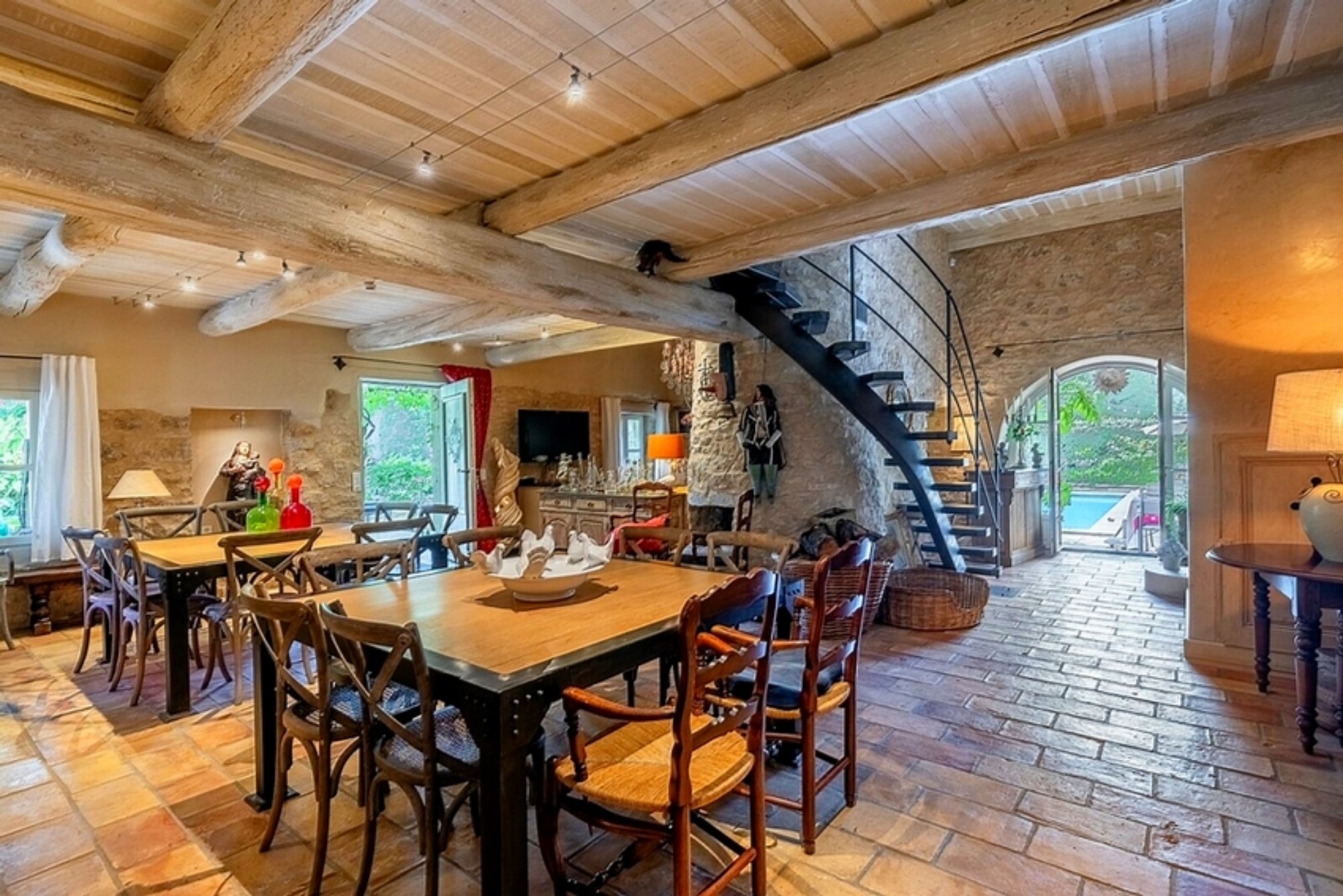 Orientée plein sud, cette demeure d’environ 330 m² habitables a été restaurée dans le respect des matériaux nobles – pierre de taille, poutres apparentes, ferronnerie artisanale – tout en intégrant les équipements modernes attendus d’une résidence de standing. Chauffage au sol, climatisation (hors salon principal naturellement tempéré), double vitrage bois, internet, système de sécurité, eau de ville et source privée assurant l’irrigation du jardin et le remplissage de la piscine : rien n’a été laissé au hasard.