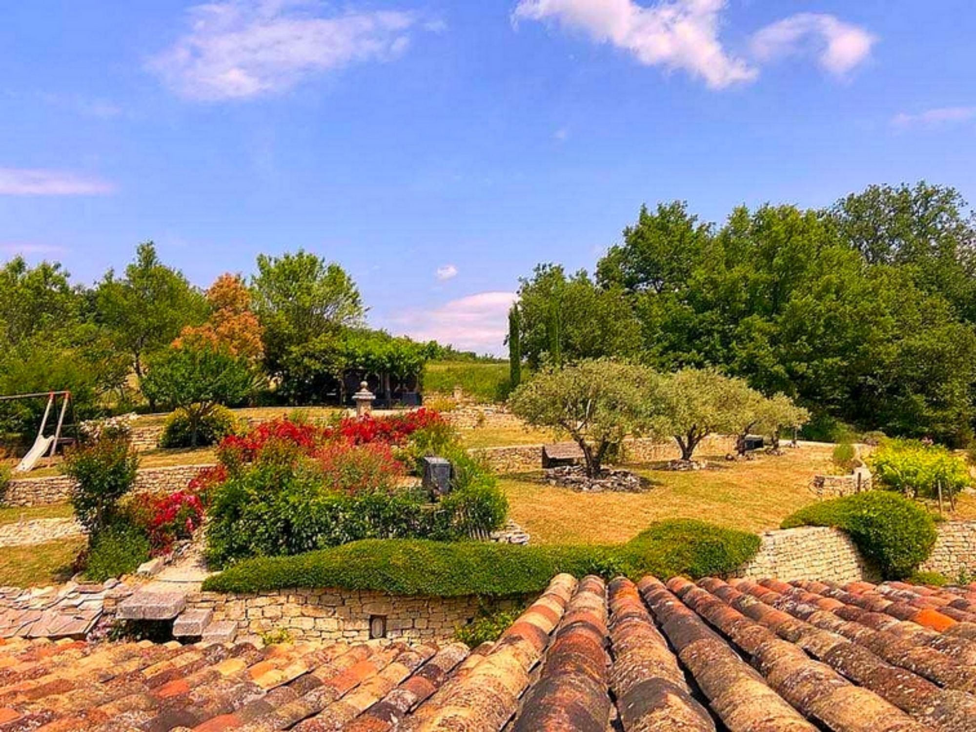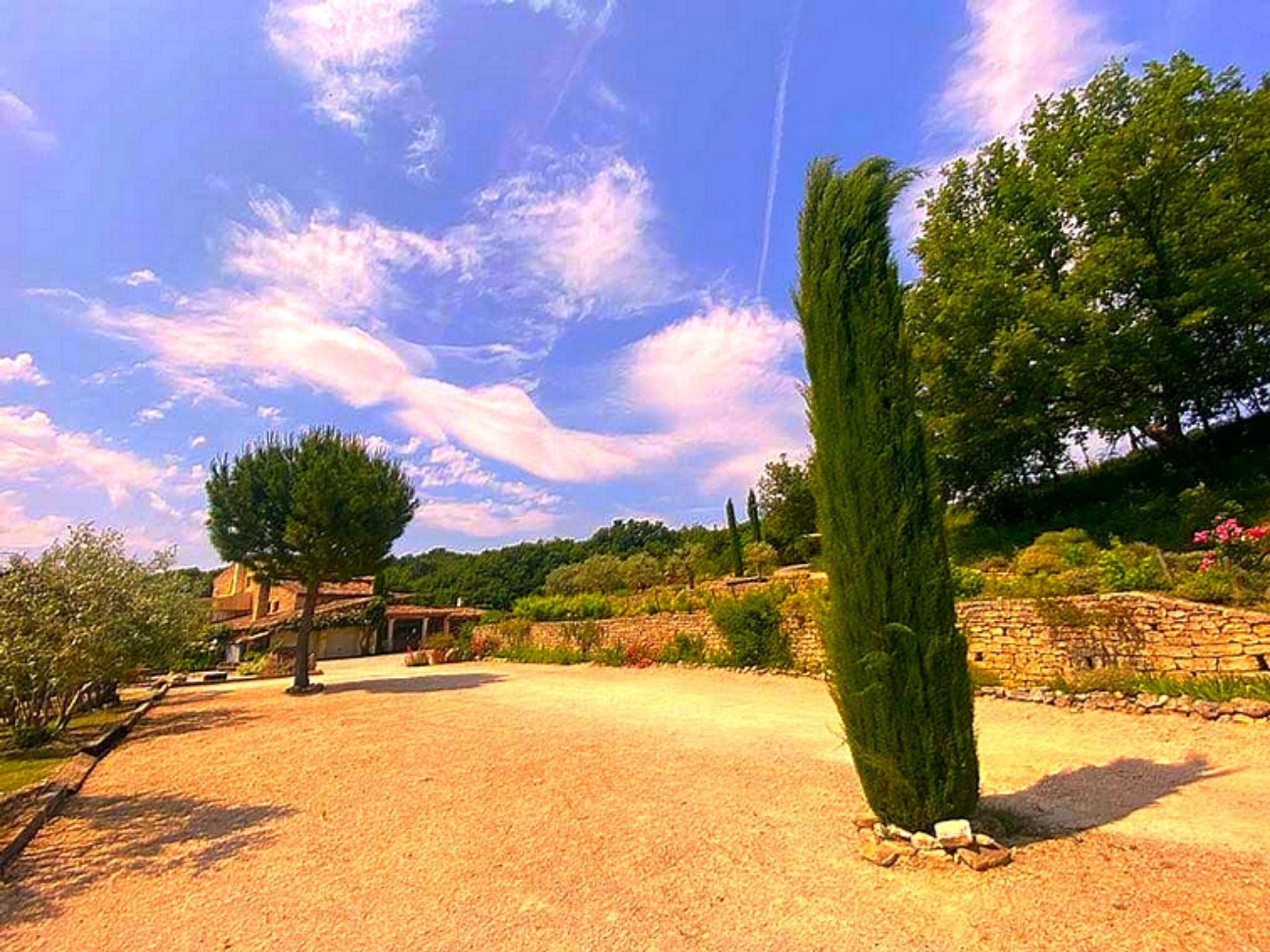 Le terrain de près de 5000 m², orné d’essences provençales, de mûriers platanes – vestiges d'une ancienne magnanerie dédiée à la culture du ver à soie – et de coins ombragés, offre une vraie parenthèse de tranquillité. Le jardin paysagé, parfaitement entretenu, abrite une belle piscine (12 m x 5 m) bordée d’une terrasse en pierre, un terrain de pétanque, une fontaine rafraîchissante, et même une cabane perchée dans un chêne centenaire, alimentée en électricité et conçue par un artisan local.